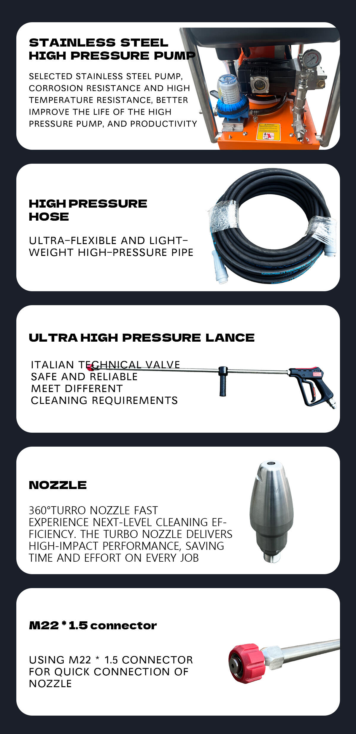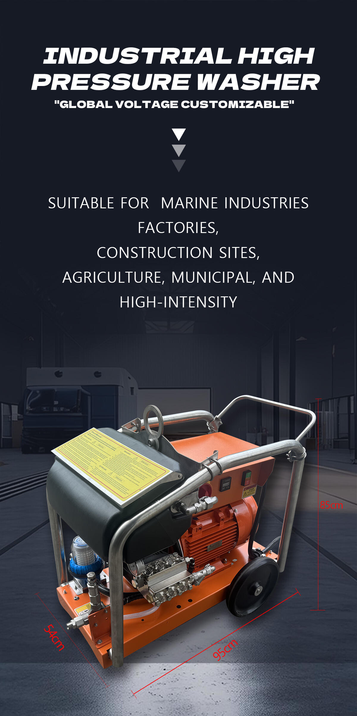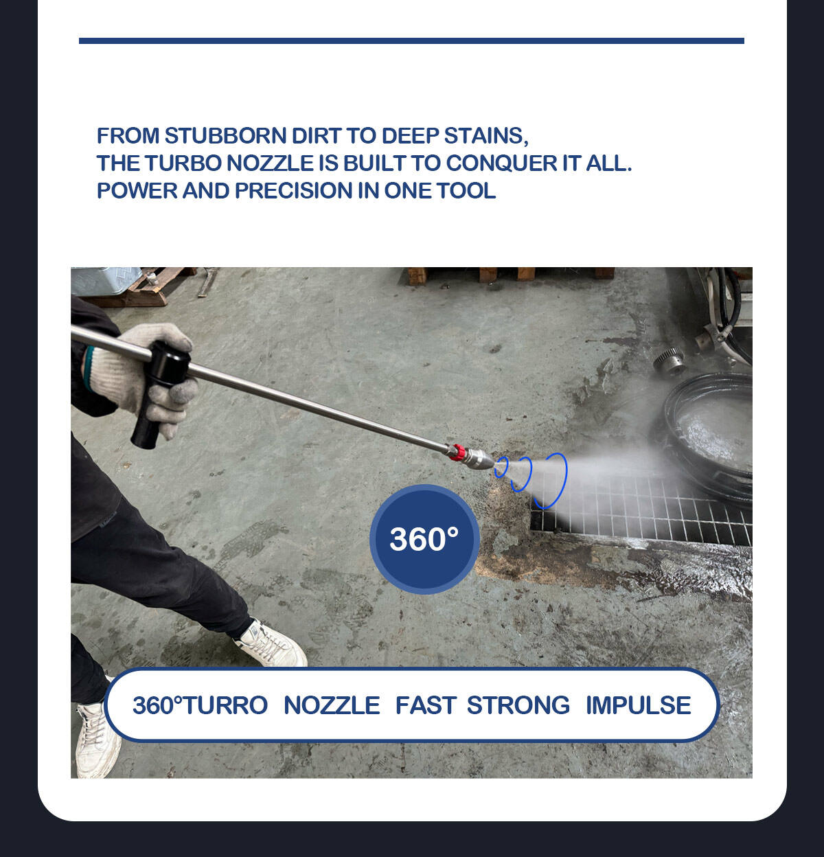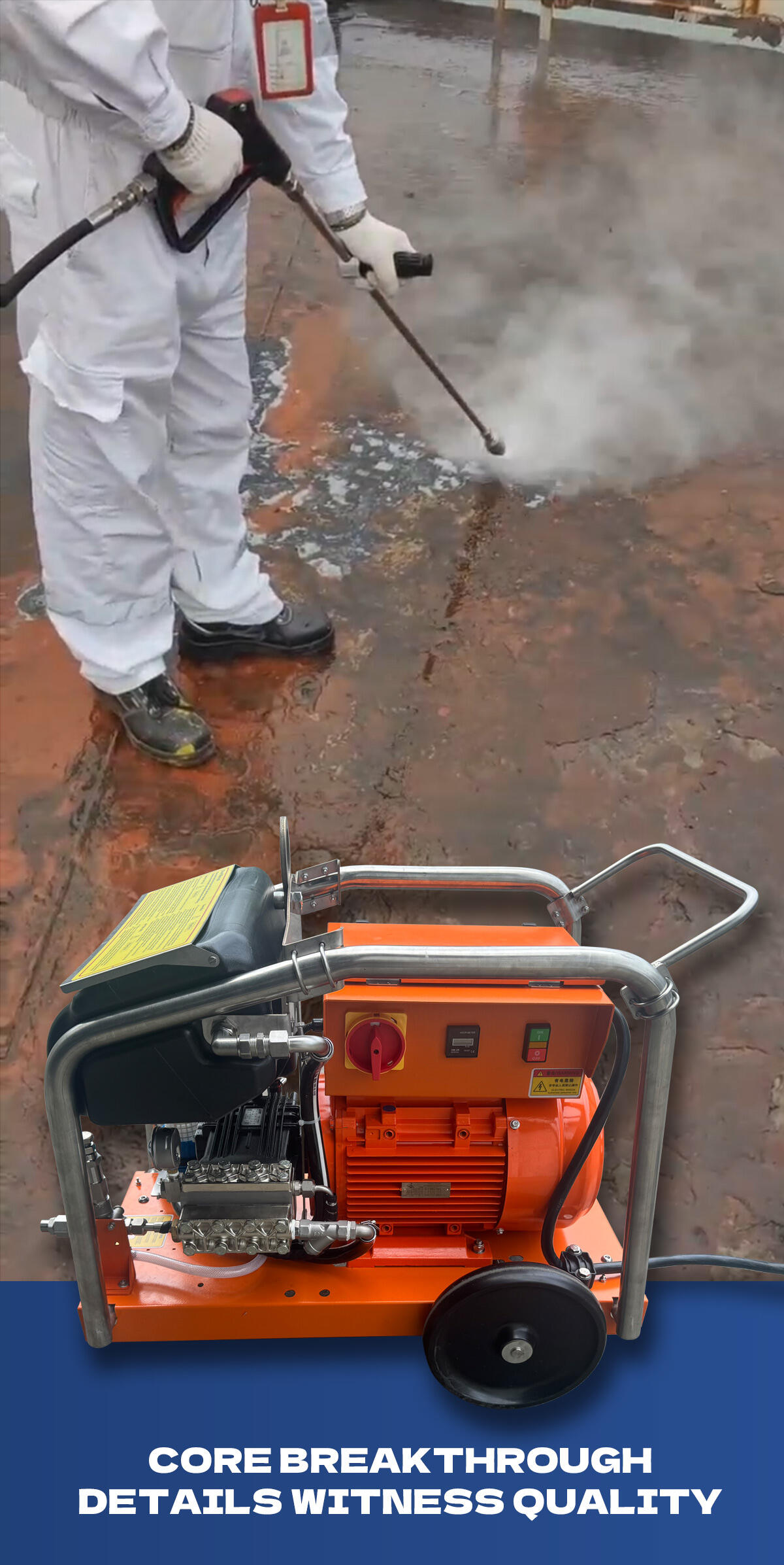 Esta lavadora industrial é capaz de proporcionar un impresionante nivel de presión de 500 bar (7250 psi), asegurando que a suxeira, o lodo e o ferruxe sexan eliminados con facilidade. O caudal de 18 L/min permite unha limpeza rápida e eficiente, polo que resulta ideal para proxectos de limpeza a grande escala en barcos, cubertas e edificios.